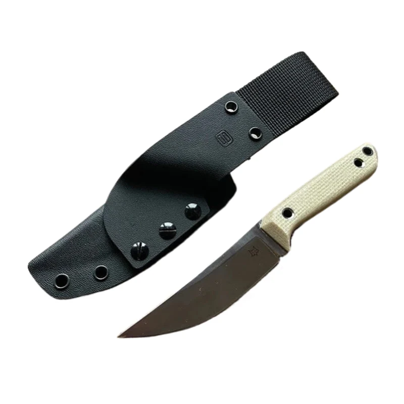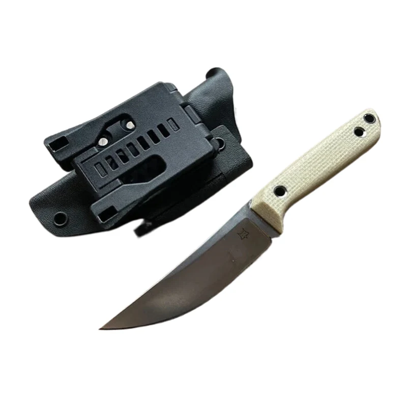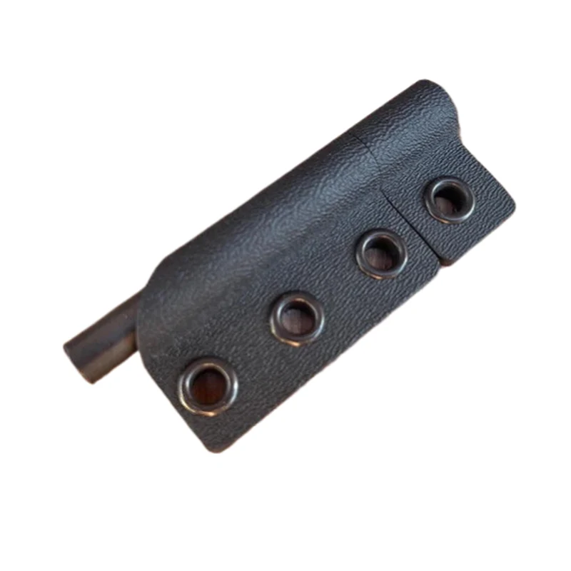 Professionele Kydex schede voor de Fox laarsmessen. Ik maak de Kydex-schede zodat het nieuwe, sierlijke mes perfect past. Het mes zit veilig in de schede zodat het ook ondersteboven gedragen kan worden (tip-up). Om het mes op de klassieke manier horizontaal of verticaal aan de riem te bevestigen, kiezen mijn klanten meestal voor een Multi-Lok of een smalle klittenbandsluiting. De Kydex laarsmessen met schede zijn verkrijgbaar in oogjes aan één zijde en oogjes aan beide zijden. Voor camouflagepatronen, andere veelkleurige patronen, carbon, basketweave of leerlook kunt u het contactformulier gebruiken om een bestelling te plaatsen.