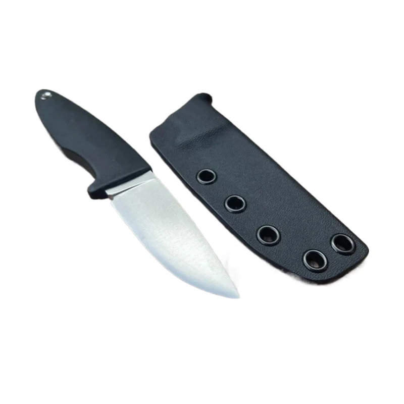 Het vaste lemmet met de horizontale meshuls is ook zo gevormd dat het perfect past, met het zachte handvat in gedachten. De vorm van de Kydex-schede is tevens ideaal om het Mini-mes als nekmes om de nek te dragen.