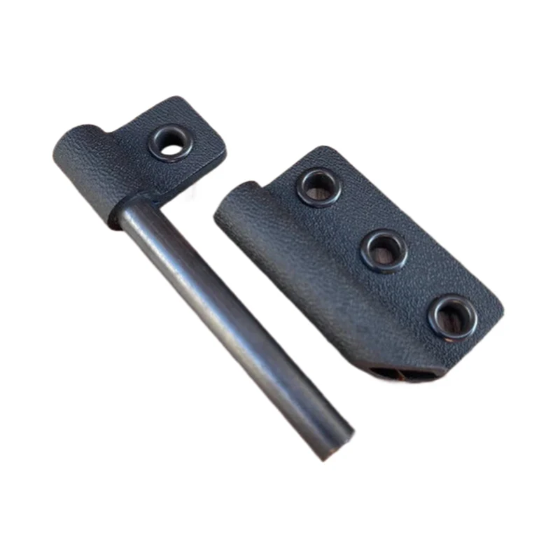 Een Multi-Lok is ideaal om het kampeermes op traditionele wijze horizontaal of verticaal aan je riem te bevestigen. Als je het mes wat lager wilt dragen, raad ik een nylon draagriem met Kydex-houder aan. Klittenband is ideaal om het mes aan de riem te dragen. Ook is klittenband een praktische oplossing om het mes aan de riem van je rugzak te bevestigen. Naast de Kydex schede kan ik een Fire Steel houder bevestigen, optioneel met Fire Steel (80mm lang).