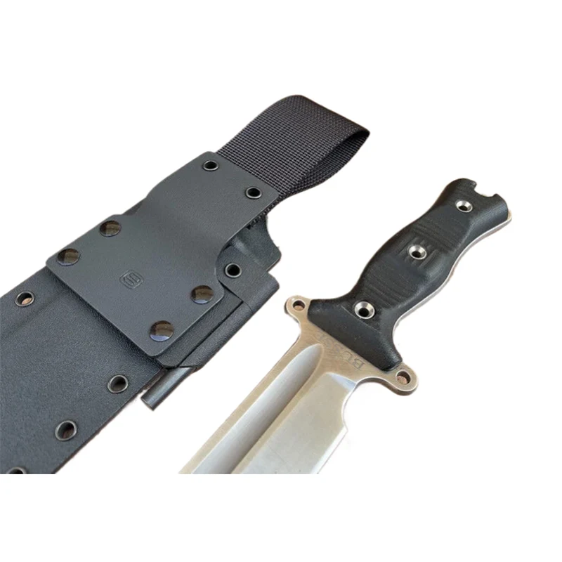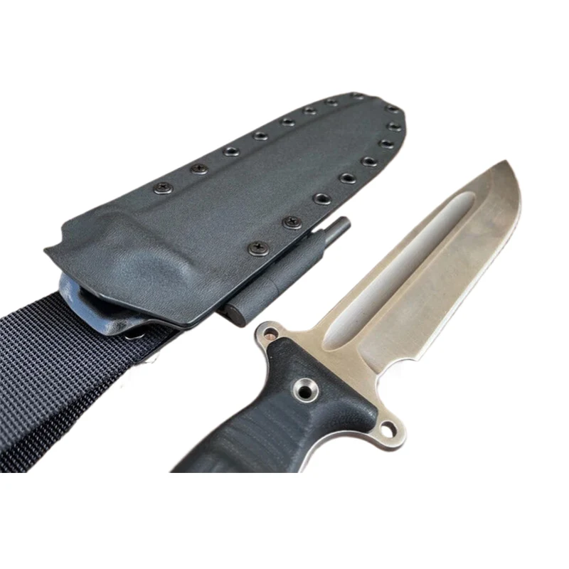 De bloedgroef van het mes werd gevuld met boetseerklei, zodat de Kydex-schede een absoluut glad oppervlak heeft. De Messen met Schede kunnen worden voorzien van Molle-riemen als riemhouder, zodat het mes ook aan Molle-systemen, zoals rugzakken, kan worden bevestigd. De Molle-riemen zijn ook geschikt om het mes aan de riem te dragen.